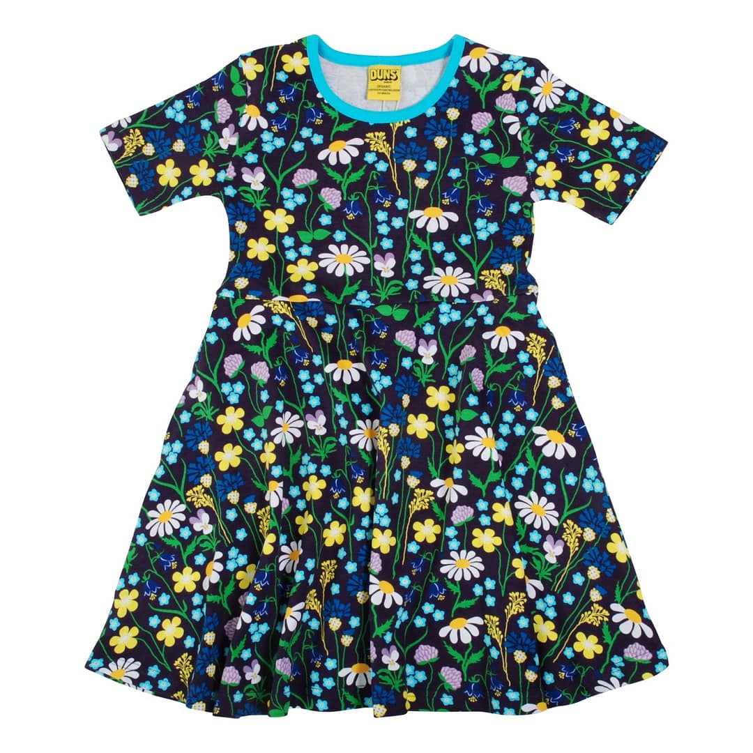 Midsummer flowers organic cotton skater dress with short sleeves and pockets by DUNS Sweden
