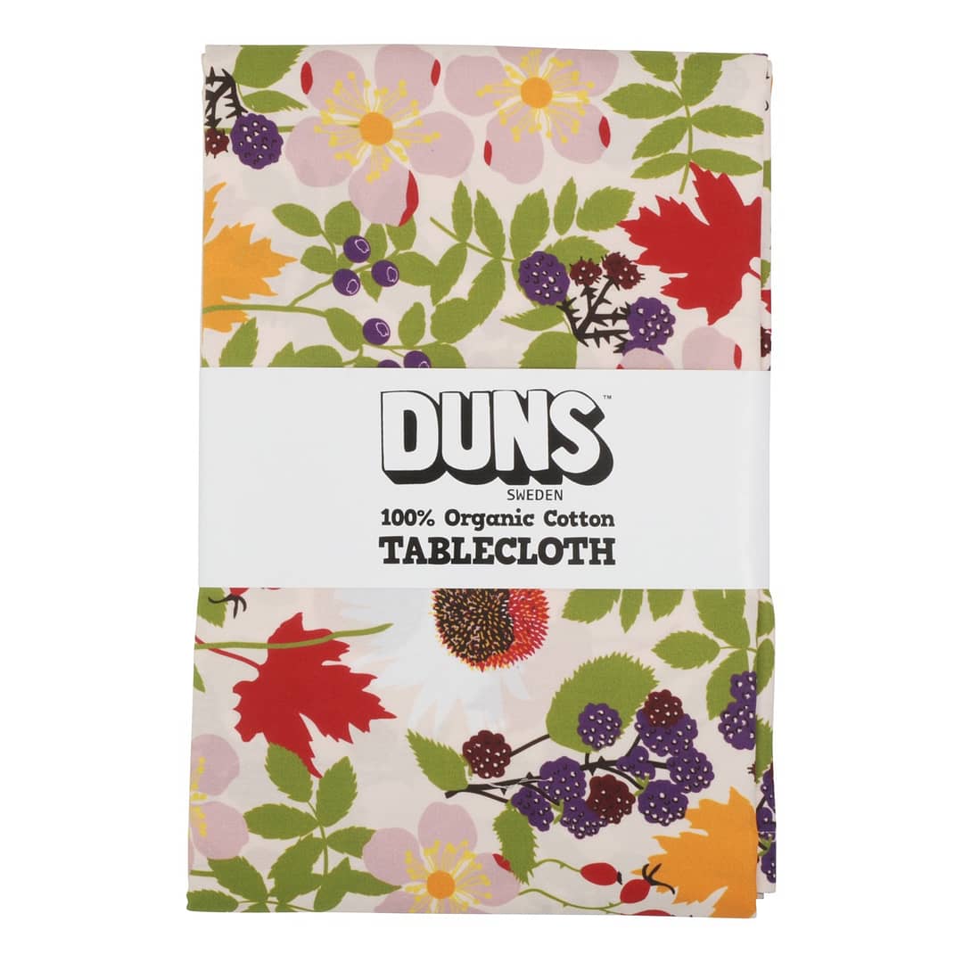 Autumnal floral print tablecloth by DUNS Sweden, an ethical GOTS certified brand. Fabulous and funky Scandi prints designed by DUNS Sweden, a GOTS organic certified Swedish clothes and lifestyle brand. 100% organic cotton