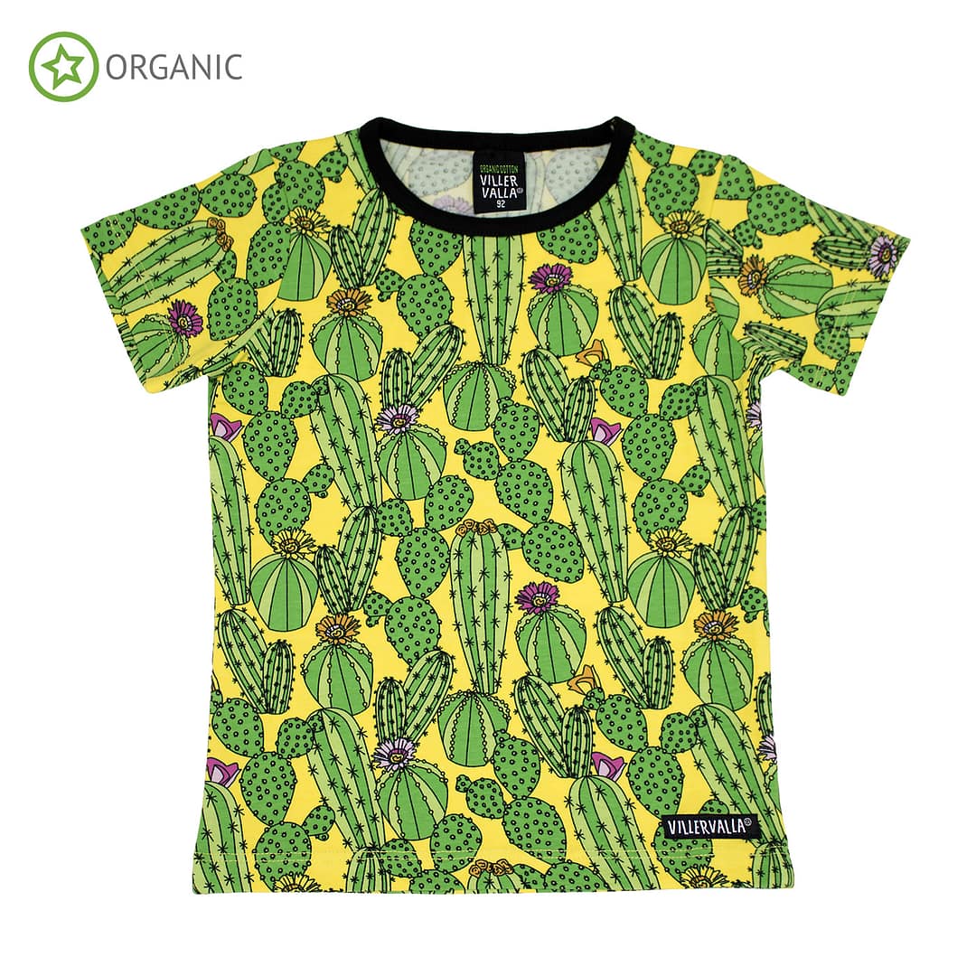 Funky cactus print organic cotton tshirt.Bright unisex prints designed by Villervalla, an Oekotex certified Swedish clothes manufacturer.